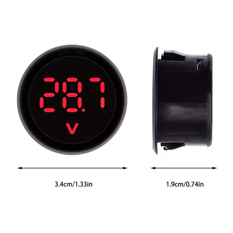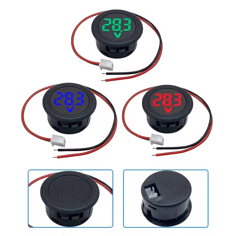Voltímetro LED Redondo de 2 Cables Voltímetro LED Pantalla DigitalVoltímetro LED Redondo de 2 Cables Voltímetro LED Pantalla Digital